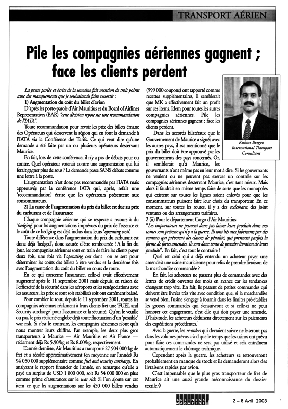 Category: 2004-2000By admin999April 8, 2003 Share this post Share on FacebookShare on Facebook TweetShare on Twitter Pin itShare on Pinterest Share on WhatsAppShare on WhatsApp Share on LinkedInShare on LinkedIn Author: admin999 Post navigationPreviousPrevious post:2003 – L’Express 02 AprlNextNext post:2003 – Eco Aus MayRelated posts2004 – L’Express 14 AprApril 14, 20042004-1 – Eco Aus FebFebruary 17, 20042004-2 – Eco Aus FebFebruary 17, 20042004 – L’Express 05 FebFebruary 5, 20042004 – L’Express 03 JanJanuary 3, 20042003 – Financial News NovNovember 22, 2003